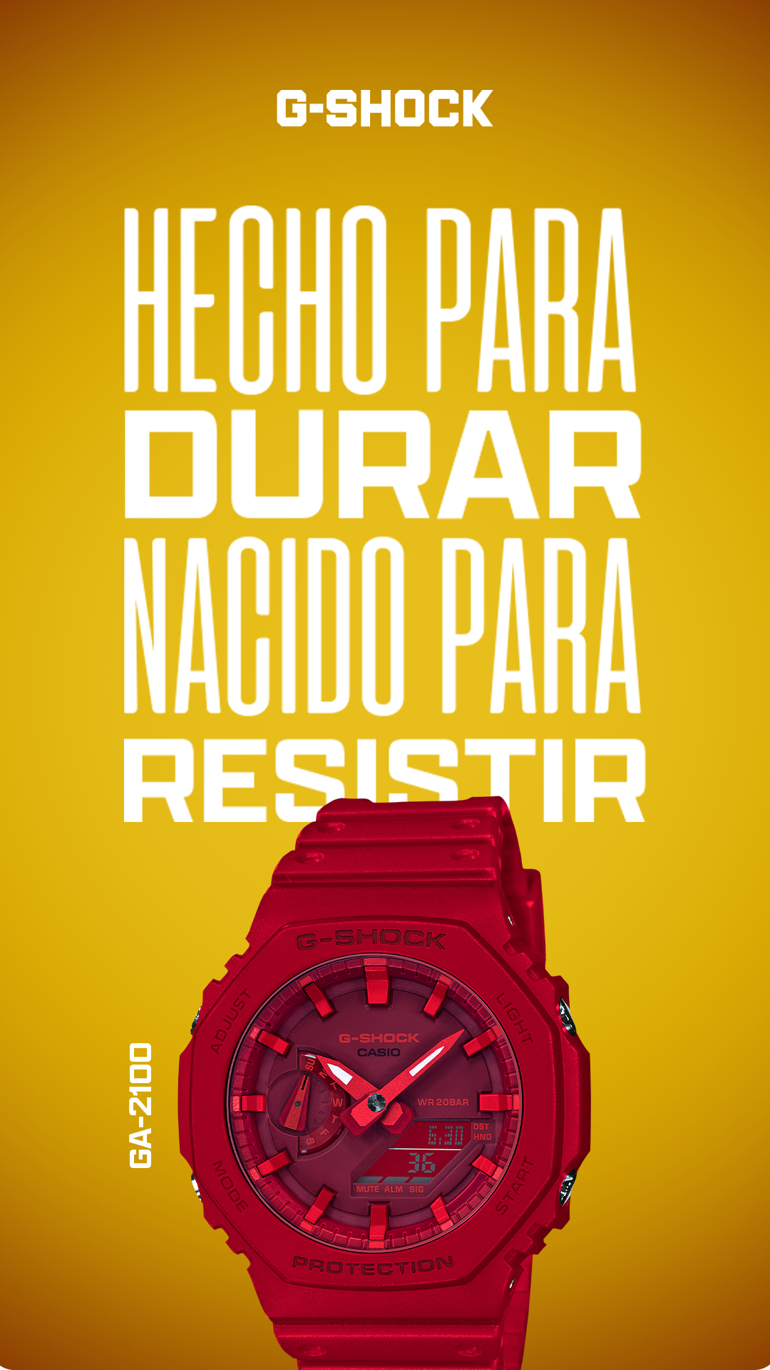 A pós-produção em Adobe Photoshop foi aplicada para refinamento estético, ajustes de luz, contraste e acabamento, alinhando o resultado final ao universo visual e ao posicionamento da G-SHOCK.