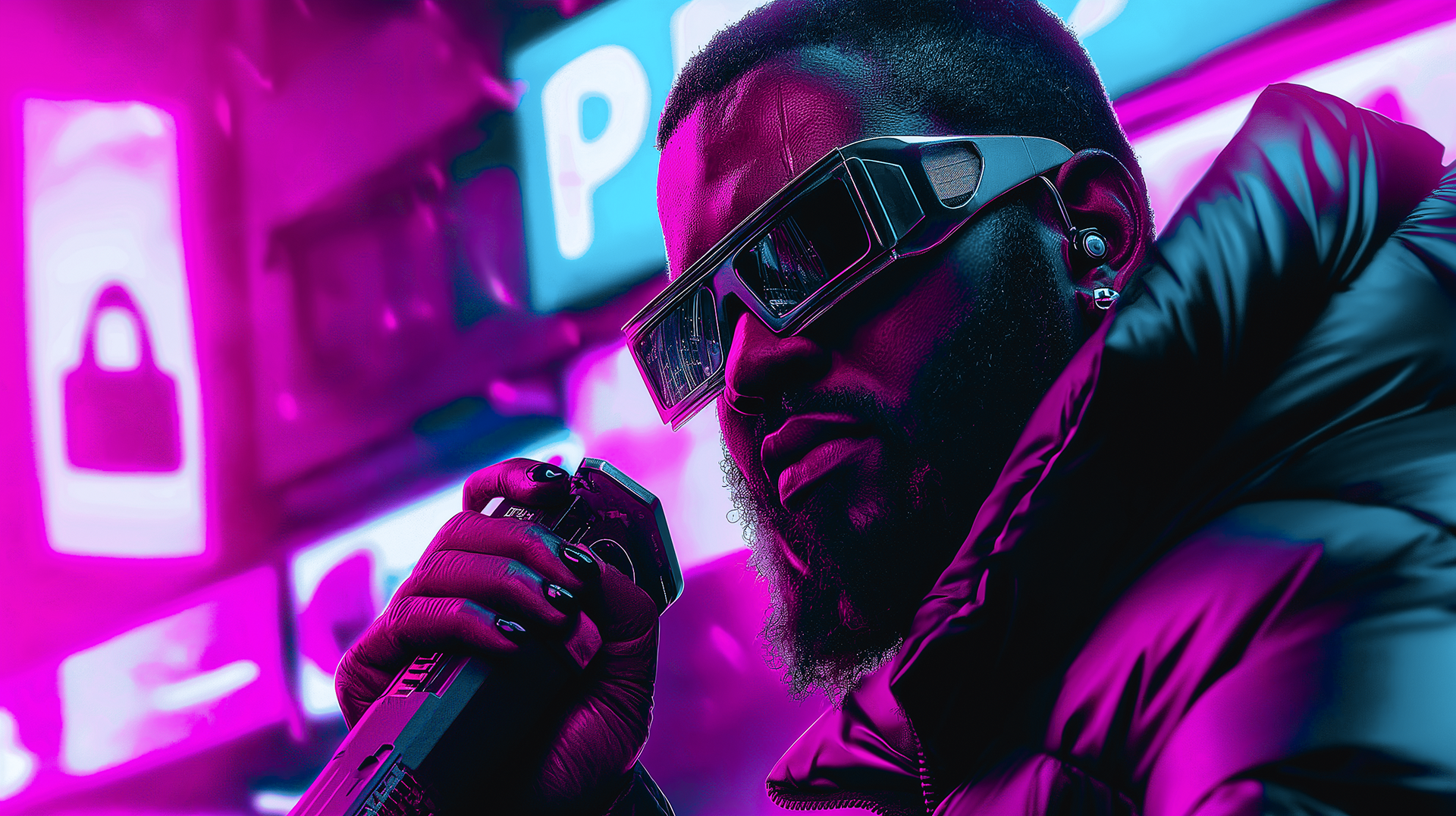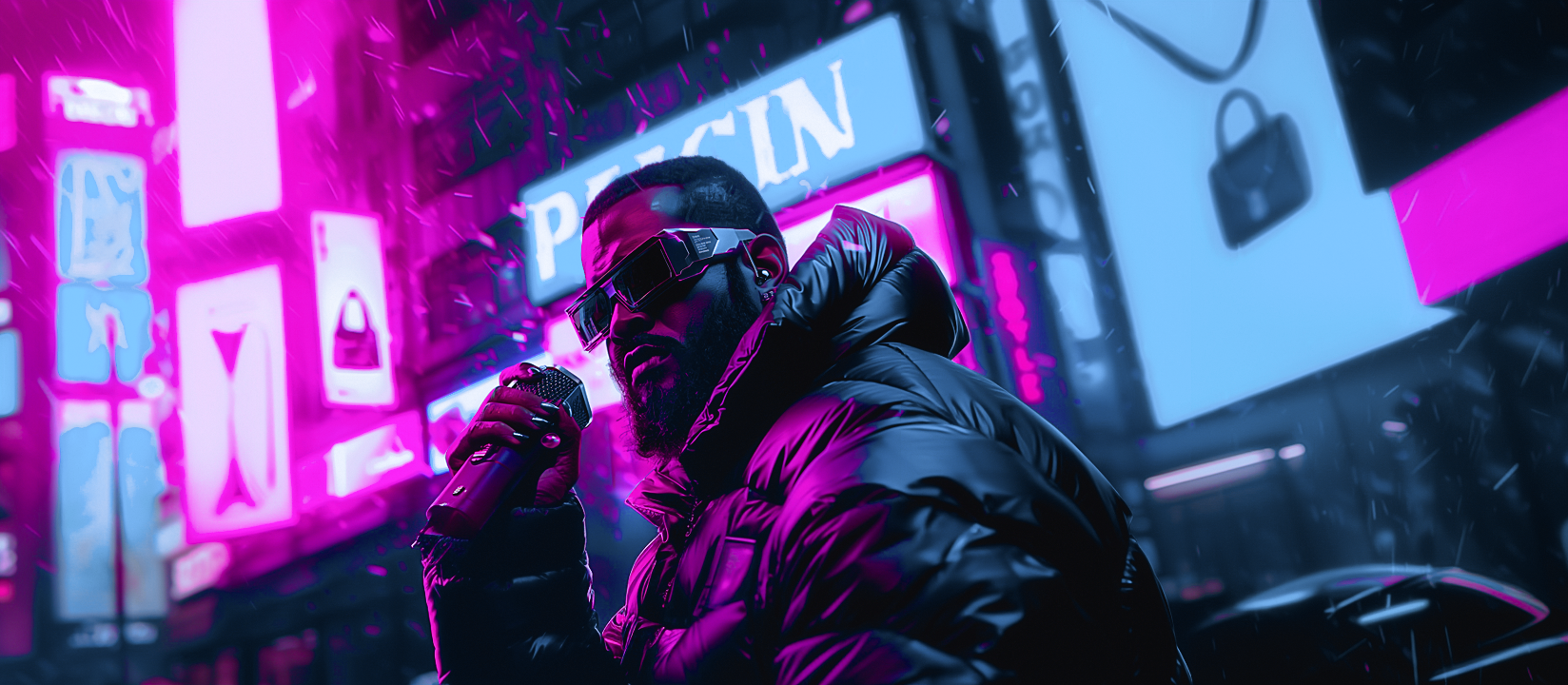 A direção de arte partiu da construção de um universo cyberpunk consistente, alinhado à atmosfera da música. As imagens foram geradas com prompts estruturados no Midjourney para garantir similaridade visual e fidelidade estética. Em seguida, essas imagens foram animadas no Runway, ainda em uma versão inicial da ferramenta e sem uso de créditos.
