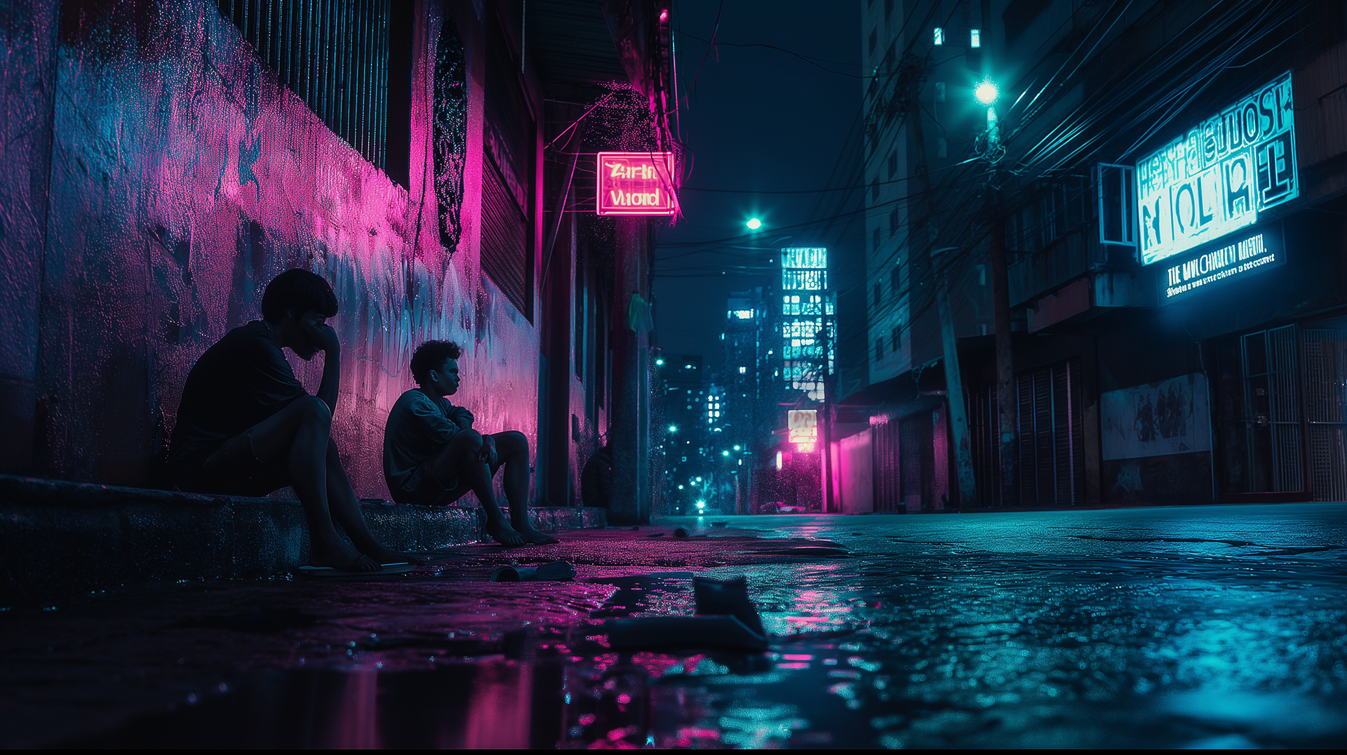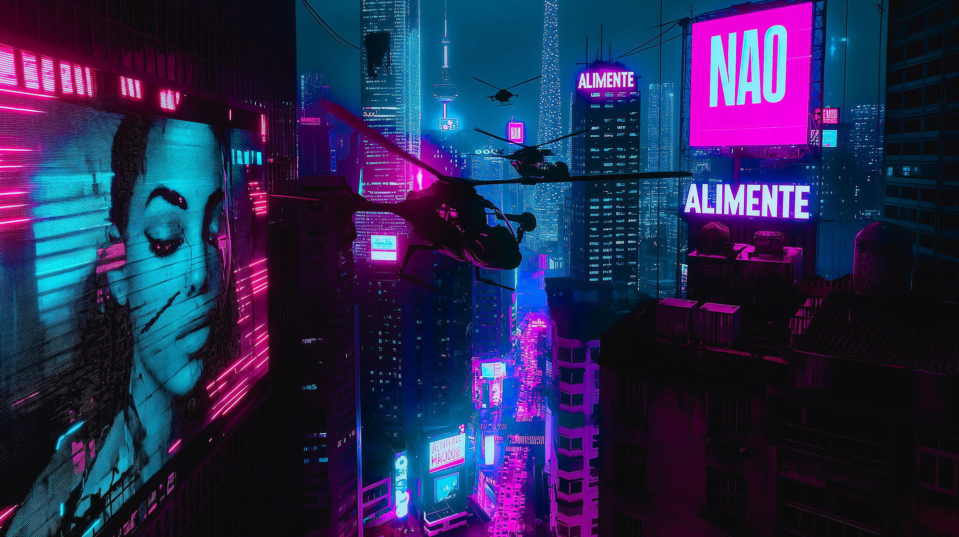 Prompt base: cyberpunk futuristic city, holographic billboard, night, brazil, film grain, highly realistic, cinematic style, neon colors, navy and pink lights --ar 16:9 --style raw --v 6.0